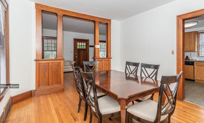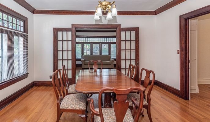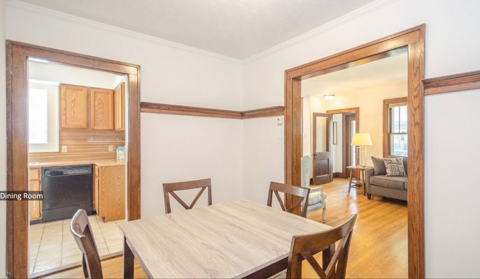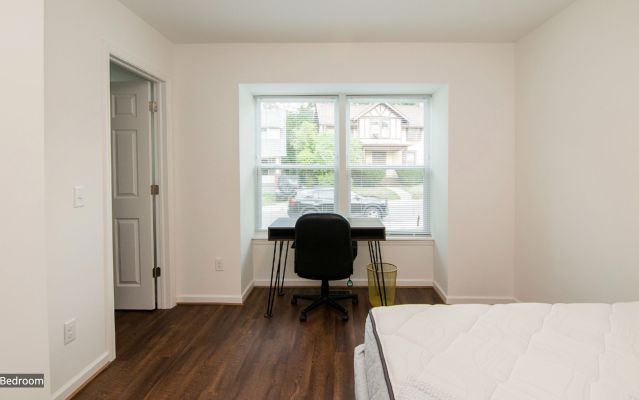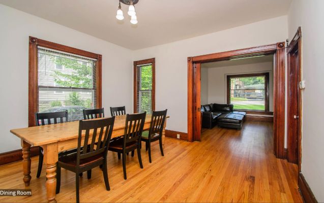 4 bedroom/2 bath (potential 6 occupants) 1,600 sq. ft. home walking distance to campus and athletic/IM facilities. Each bedroom features attached ante room ideal for studying, lounging, or a roommate. Furnished living room and attached dining room. Original wood trim, doors, and hardwood floors throughout main level. Kitchen features generous storage and countertop area. Additional large remodeled attic space great for lounging and storage. Convenient in-home laundry. Basement with storage space. On-site parking and garage. Air conditioning. Covered front porch. High-efficiency hot water heater. Attention to detail throughout!