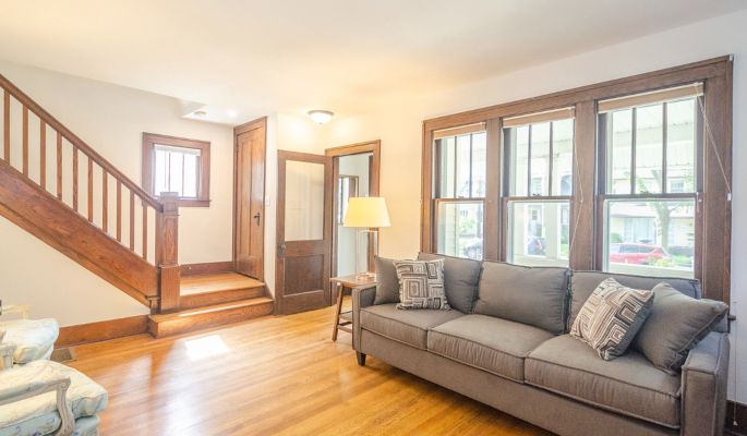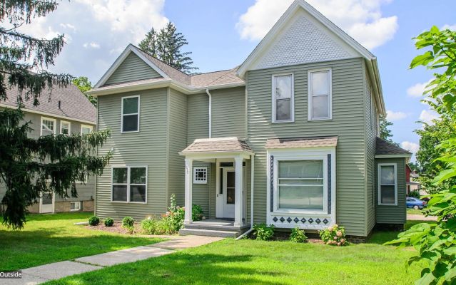 7 bedroom/3 bath 2,400 sq. ft. home walking distance to campus and athletic/IM facilities. 2021 summer construction added 6 spacious bedrooms/2 baths to home meticulously maintained by prior owner. New bathrooms feature tile showers, floors, and 48” vanities. Existing spacious bedroom with adjacent bathroom. Large furnished living room and dining room features original woodwork. Separate kitchen with granite countertops, Viking cooktop, and storage. Bonus upstairs lounge area. Wood flooring throughout. Convenient in-home laundry with basement storage. Air conditioning. On-site parking. Enclosed front porch. High-efficiency hot water heater. Attention to detail throughout!