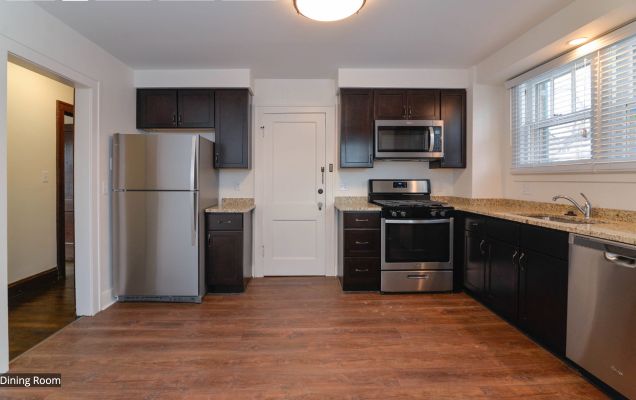 7 bedroom/3 bath 2,250 sq. ft. home walking distance to campus and athletic/IM facilities. Recently remodeled kitchen features new cabinets with generous storage, granite countertops, and Whirlpool appliances. Large furnished living room and adjacent dining room! Bathrooms feature updated tile, fixtures, and vanities. Wood flooring throughout main level. Great on-site parking. Air conditioning. Convenient in home laundry. Large basement ideal for workout equipment and storage. Covered front porch. High efficiency hot water heater. Attention to detail throughout!